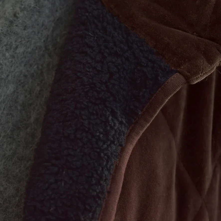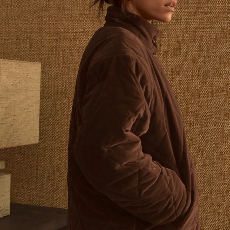 Chaleureux et chic , le manteau Louisa nous séduit par son velours matelassé chocolat profond et son style cocon. Confectionnée en 100 % velours de coton avec ouate intérieure et doublure moumoute, il allie douceur, confort et chaleur. Sa coupe légèrement ample, son col montant, ses poches discrètes et sa fermeture boutonnée en font une pièce idéale pour l’automne-hiver