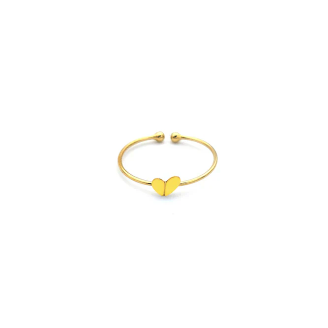 Un cœur discret au bout des doigts. Mini bague dorée et émaillée, à porter seule ou en accumulation, comme un éclat de tendresse au quotidien.