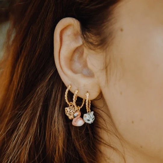 Chaque mini-créole est une œuvre d’art en soi, dorée à l’or fin et ornée d’un petit anneau délicat. Son pendentif animalier en porcelaine ajoute une touche de charme et d’originalité, faisant de chaque boucle d’oreille une pièce unique à collectionner.
