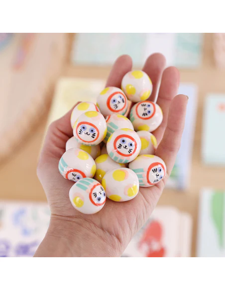 Modelé et peint à la main dans notre atelier parisien, chaque mini grigri “énergie” est unique.