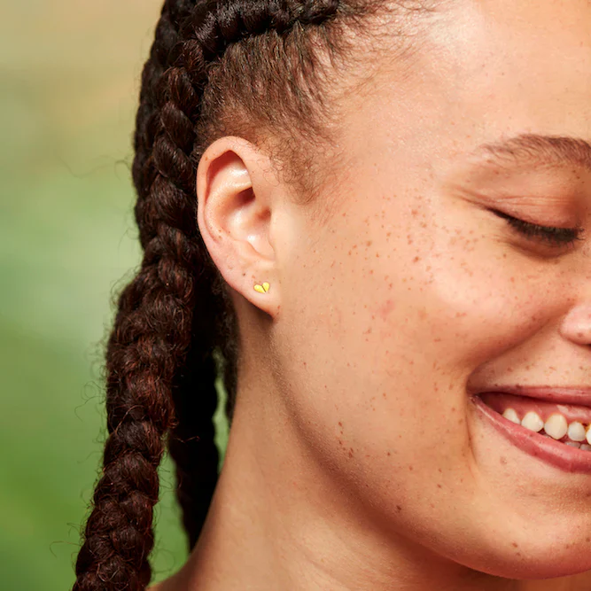 Ces mini boucles d’oreilles puces Coeur Rose de Nadja Carlotti, avec leur émail coloré et plaqué or, ajoutent une touche discrète et féminine à votre look quotidien.