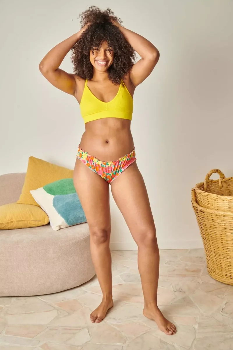 Petite précision (et pas des moindres) : on pourrait croire que sa forme fait des marques sous les pantalons mais QUE NENNI ! Il peut effectivement se remarquer sous un pantalon large, car il ne se plaquera pas complètement, mais il sera aussi invisible qu’une culotte sous un pantalon moulant. Car oui, les coutures zigzag ne sont pas uniquement faites pour résister à l’usure du temps : les fronces s’aplatissent sous vos vêtements, et le bloomer devient alors tout aussi discret qu’une culotte classique. 👌