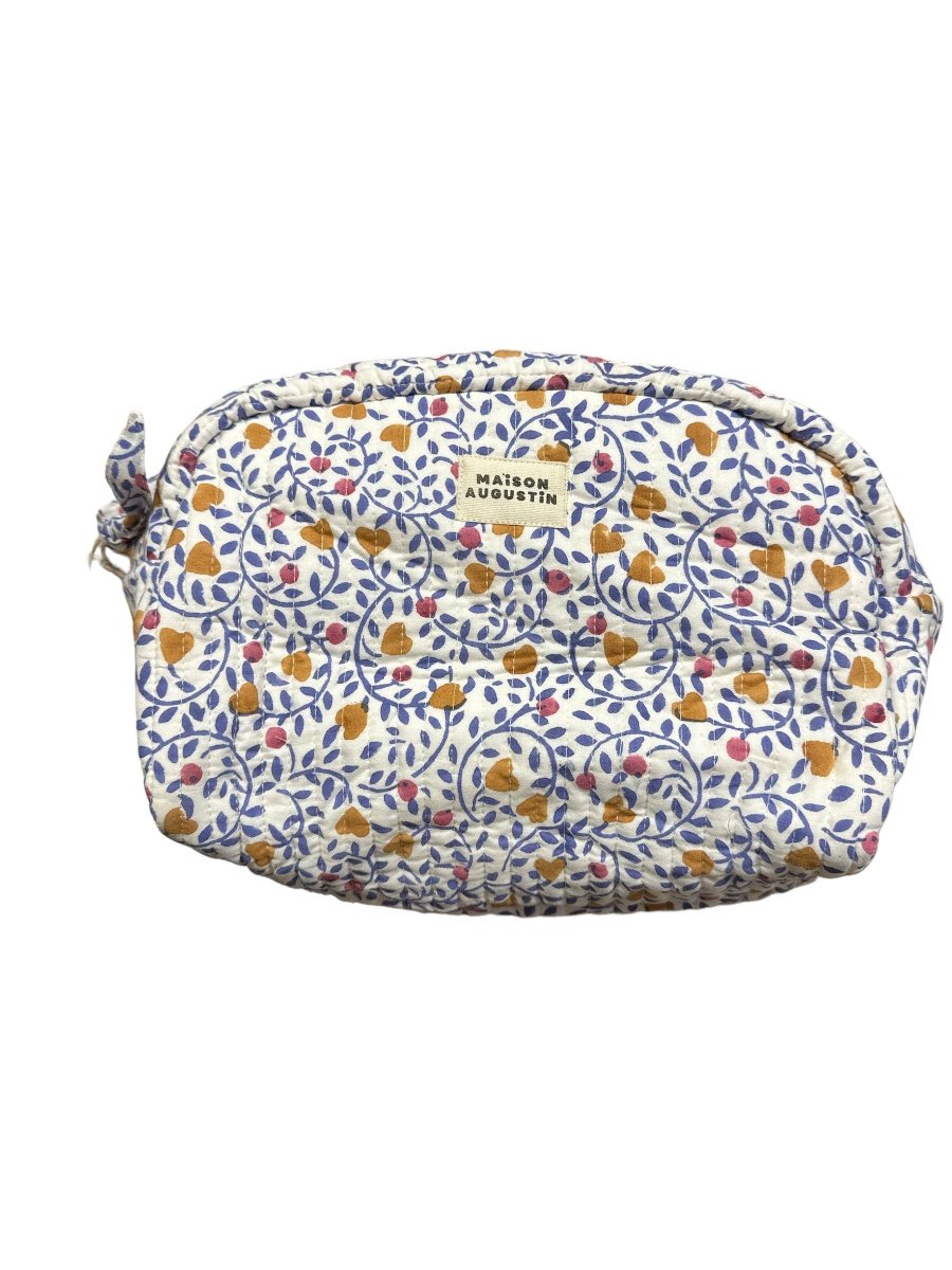 Composition – Entretien * 100% Coton matelassé * Fermeture avec zip caché * Plusieurs poches à l’intérieur de la trousse Doublure étanche plastifiée Cette trousse a été imprimée de manière artisanale selon la technique d’impression blockprint et confectionné à Jaipur en Inde. Cette confection manuelle peut entraîner certaines irrégularités qui en font le charme et le rendent unique ♡