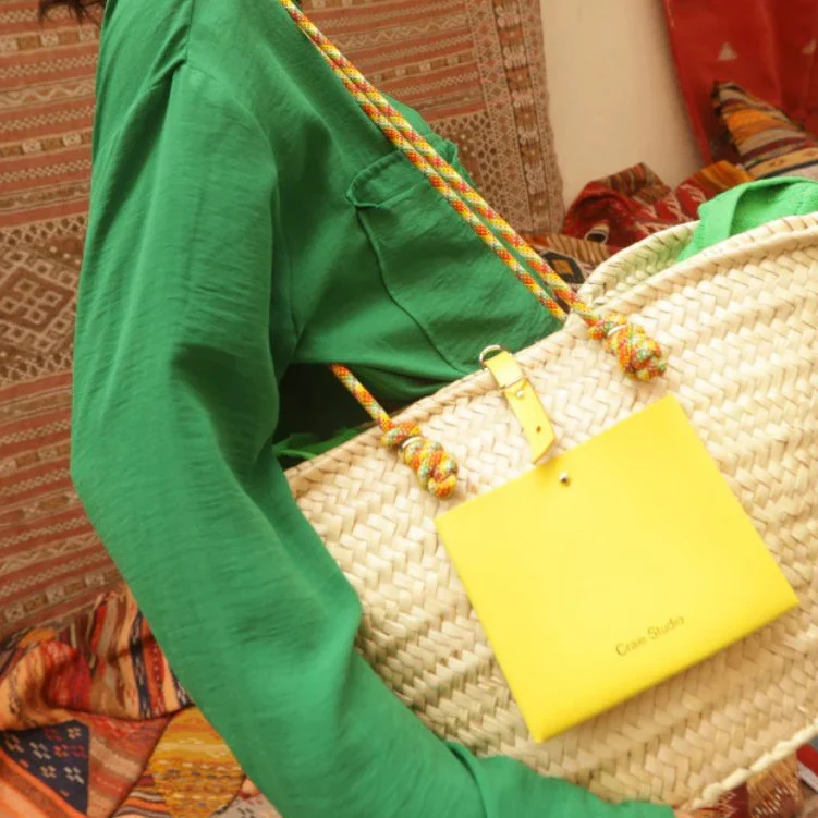 Sac panier en fibres de palmier taille medium, il est pratique, chic et original avec sa cordelette en corde et ses empiècements en cuir. Anses mi-longues en corde : porté épaule confortable Fermeture avec une bande cuir. Poche avant fermée avec bouton Format : 38 x 26 x 13 cm environ Fabrication artisanale à la […]