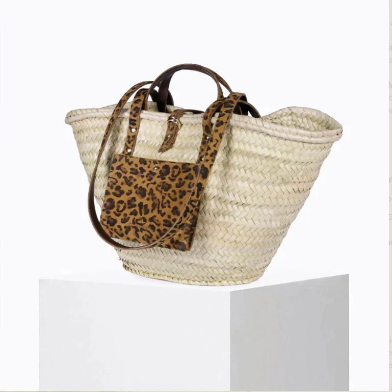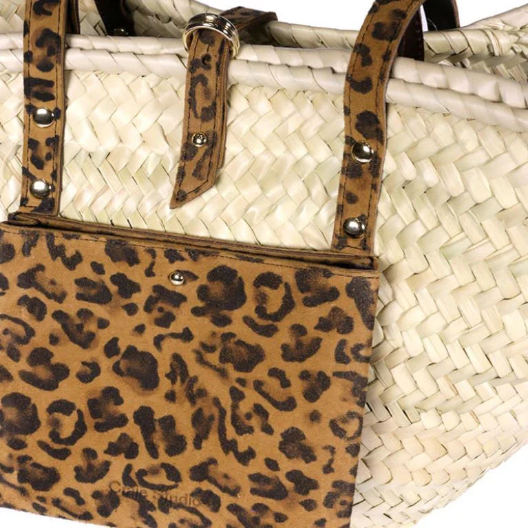Le Panier Léo Camel revisite l’iconique panier d’été avec une touche audacieuse grâce à sa pochette avant en cuir de chèvre velours imprimé léopard, doublé de cuir de veau pour plus de résistance. Un équilibre parfait entre esprit naturel et caractère affirmé, pour celles et ceux qui aiment se démarquer.