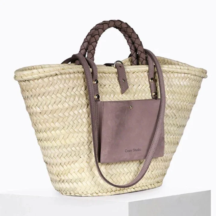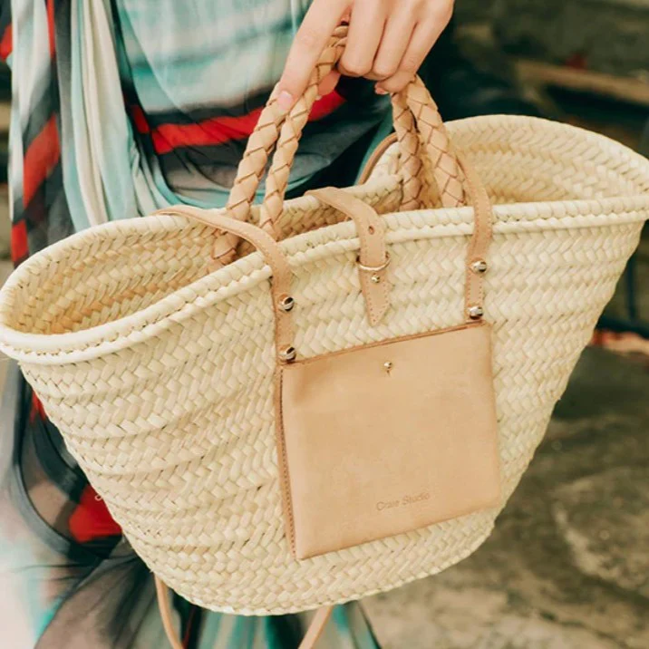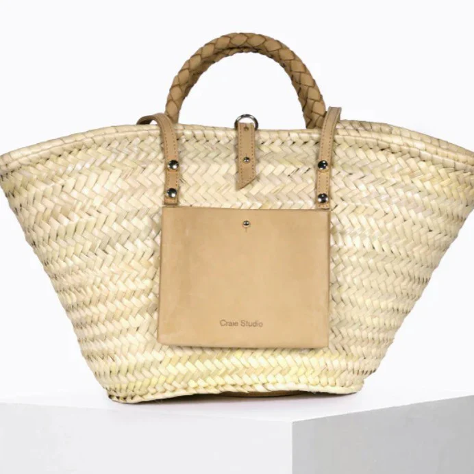 Véritable sac incontournable de l’été, il associe avec élégance la fibre naturelle de palmier Doum au travail du cuir nubuck, pour un rendu à la fois authentique et contemporain.