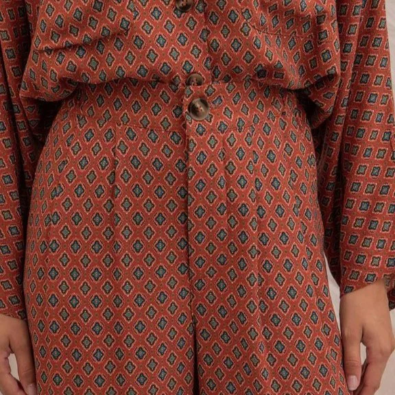 Son motif provençal sur fond rouge profond apporte une touche solaire et rétro, tandis que les boutons marbrés et les poches plaquées à l’avant lui insufflent une note de raffinement discret.