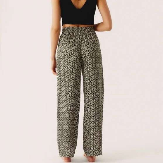 Pantalon taille haute, coupe loose fluide légèrement satinée, ultra comfy. Cintré à la taille pour souligner votre silhouette