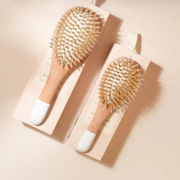 Brosse en bois naturel, idéale pour démêler, nourrir et faire briller les cheveux. ✨