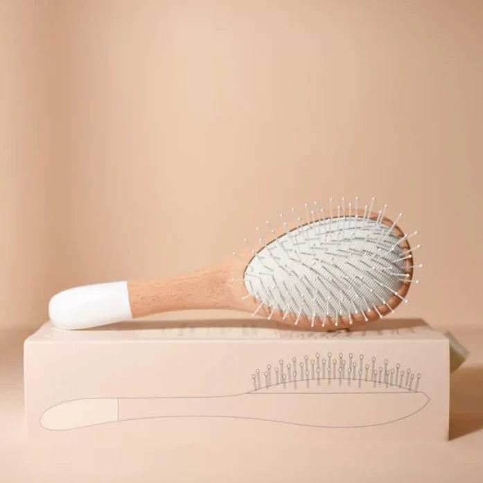 Brosse en bois naturel, idéale pour démêler les cheveux en douceur, sans casse ni douleur.