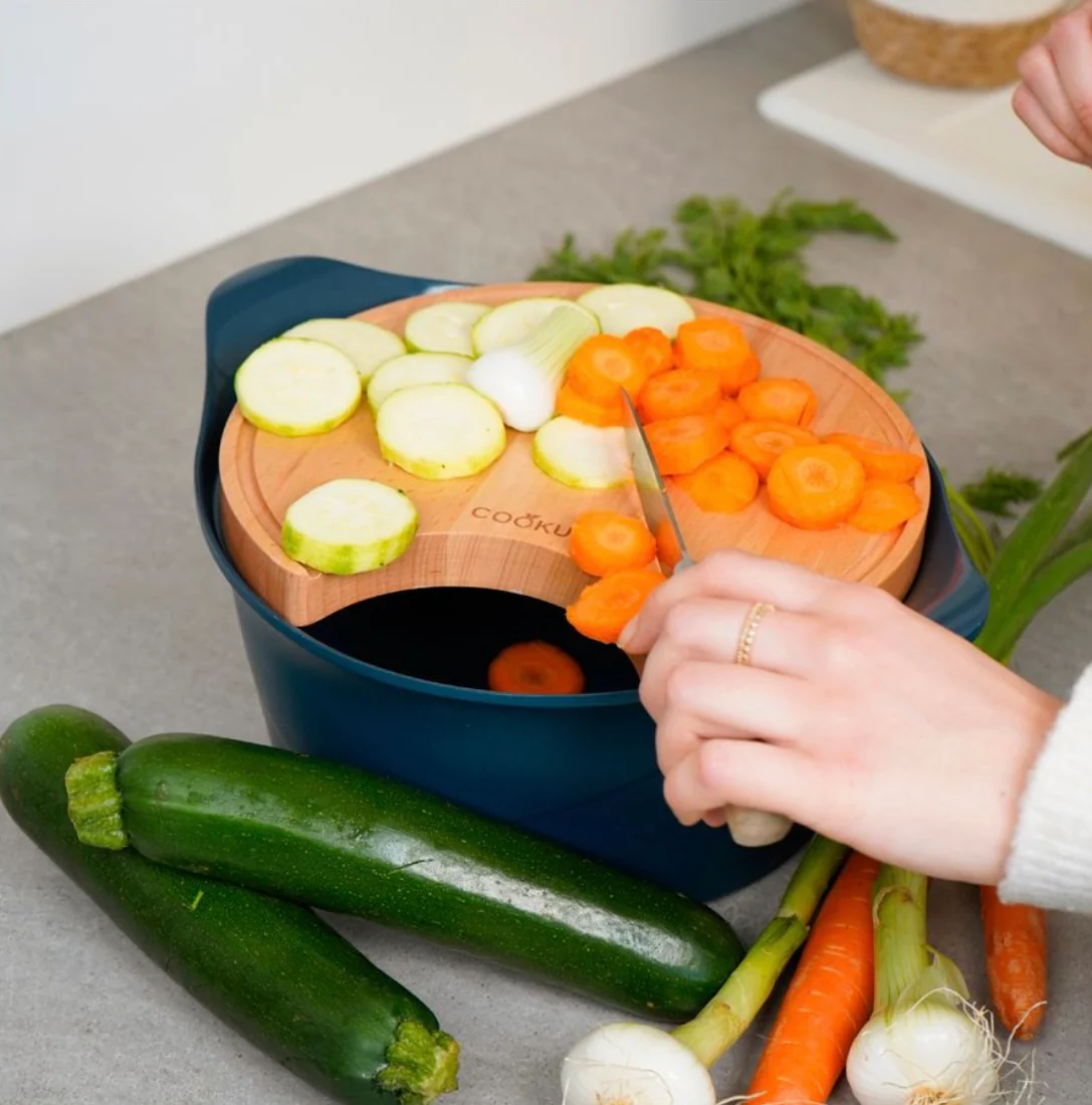 -Couper vos aliments et les faire tomber facilement dans la Cocotte