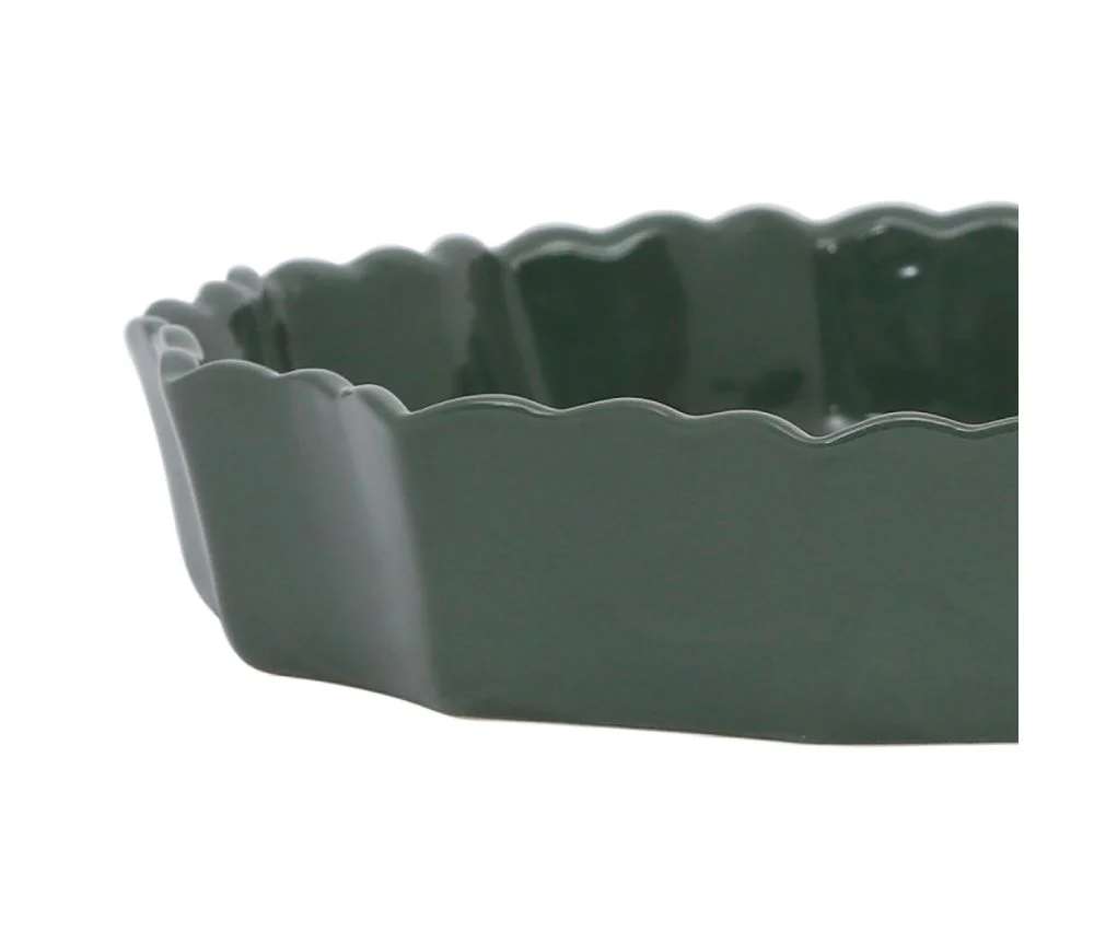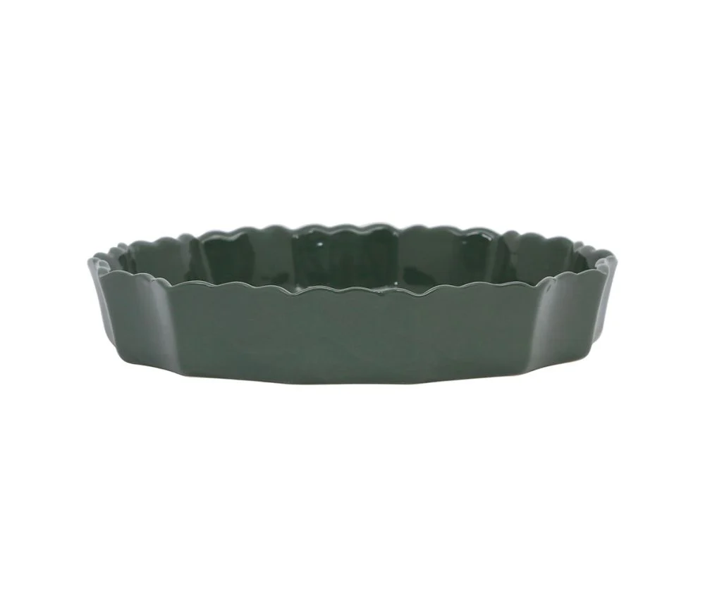 Apportez une touche de charme et d’authenticité à vos tables avec le plat à tarte Charlotte coloris romarin. Confectionné en grès, il séduit par sa teinte vert profond et ses bords délicatement ondulés, qui lui donnent une allure à la fois élégante et artisanale.