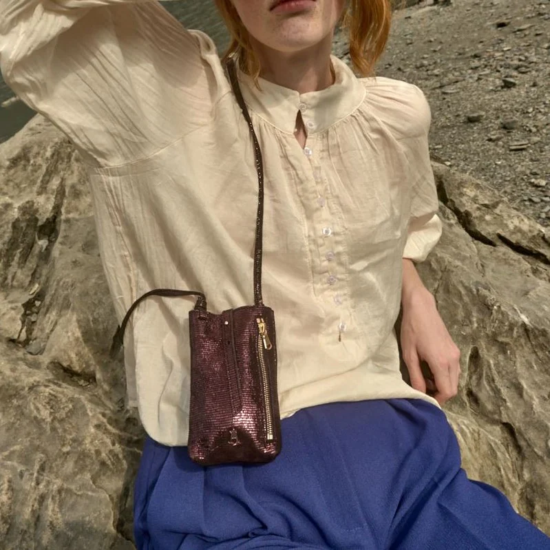 Petit plus : il se ferme par un petit lien de cuir sur un bouton de col, quand vous tirez sur le lien il fait remonter votre téléphone hors de la pochette.