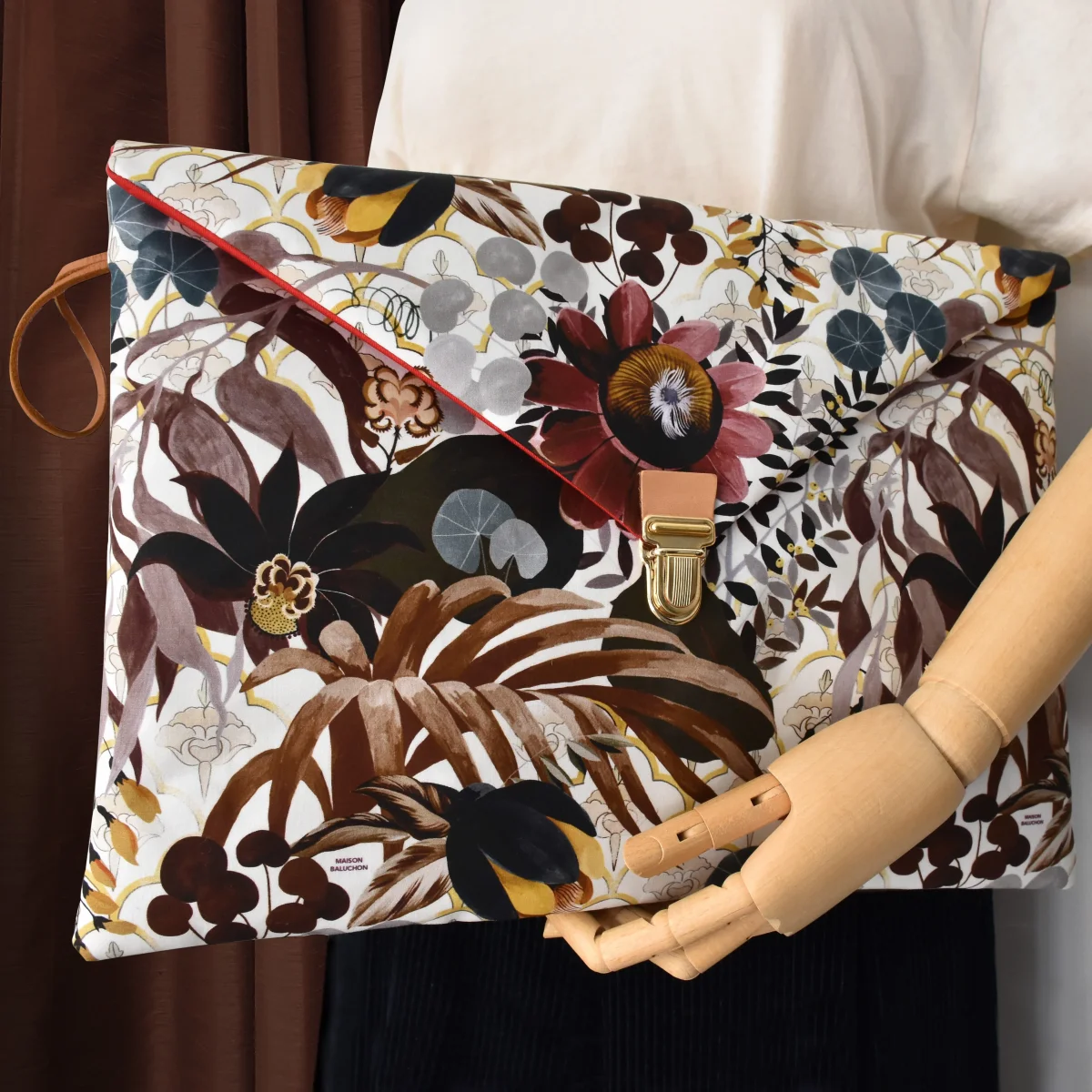 Housse d’ordinateur type cartable avec fermeture à clip. Son rembourrage molletonné confère une protection optimale à votre portable. Un look stylé vintage assuré!Format 15 pouces ou moins: 39 x 28 cm100% coton, 100% cuir végétal – Tannerie françaiseDoublure coton rougeRéalisée à la main en France de l’illustré au façonnage.