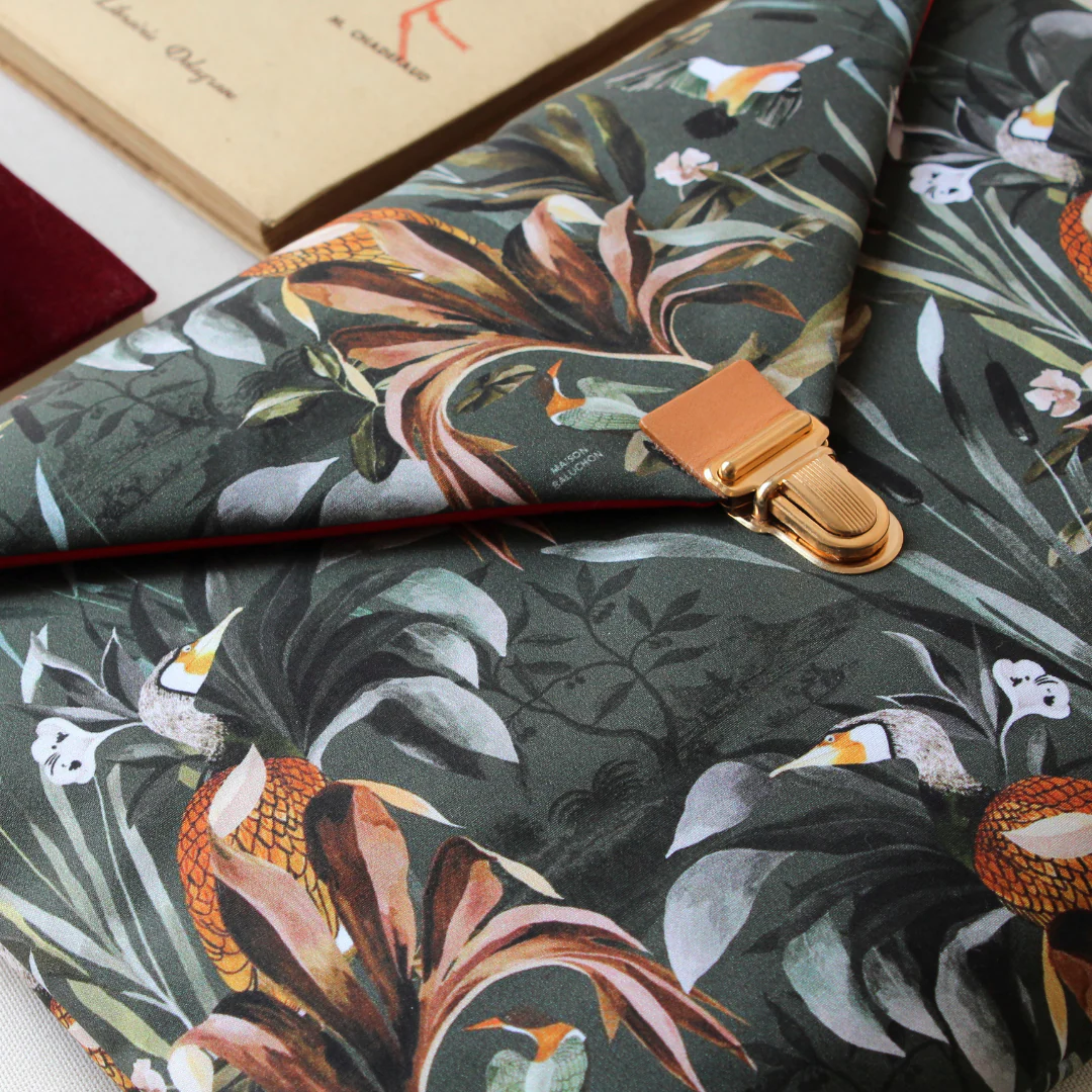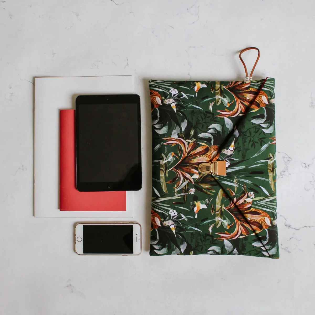 Housse d’ordinateur type cartable avec fermeture à clip. Son rembourrage molletonné confère une protection optimale à votre portable. Un look stylé vintage assuré!Format 15 pouces ou moins: 39 x 28 cm100% coton, 100% cuir végétal – Tannerie françaiseDoublure coton rougeRéalisée à la main en France de l’illustré au façonnage.
