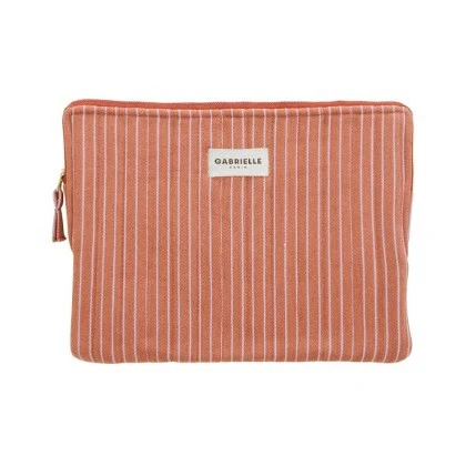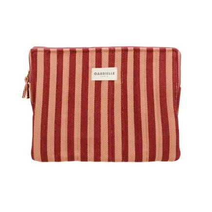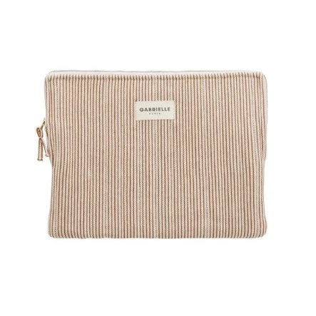 La pochette ordinateur GABRIELLE est conçue pour protéger votre appareil avec élégance et simplicité. Confectionnée en 100 % coton, elle associe un tissu extérieur à rayures intemporelles à une doublure en coton blanc pour une finition soignée et délicate.