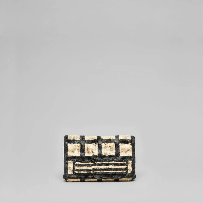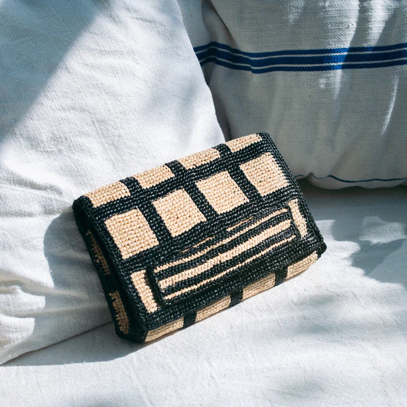 La pochette Karen, avec son motif blanc et noir est pratique, élégante et estivale. Parfait pour les journées ensoleillées ou les soirées habillées! Dimensions : L 28 cm x H 16 cm x P 6 cmFait main à Madagascar, 100% de raphia naturel