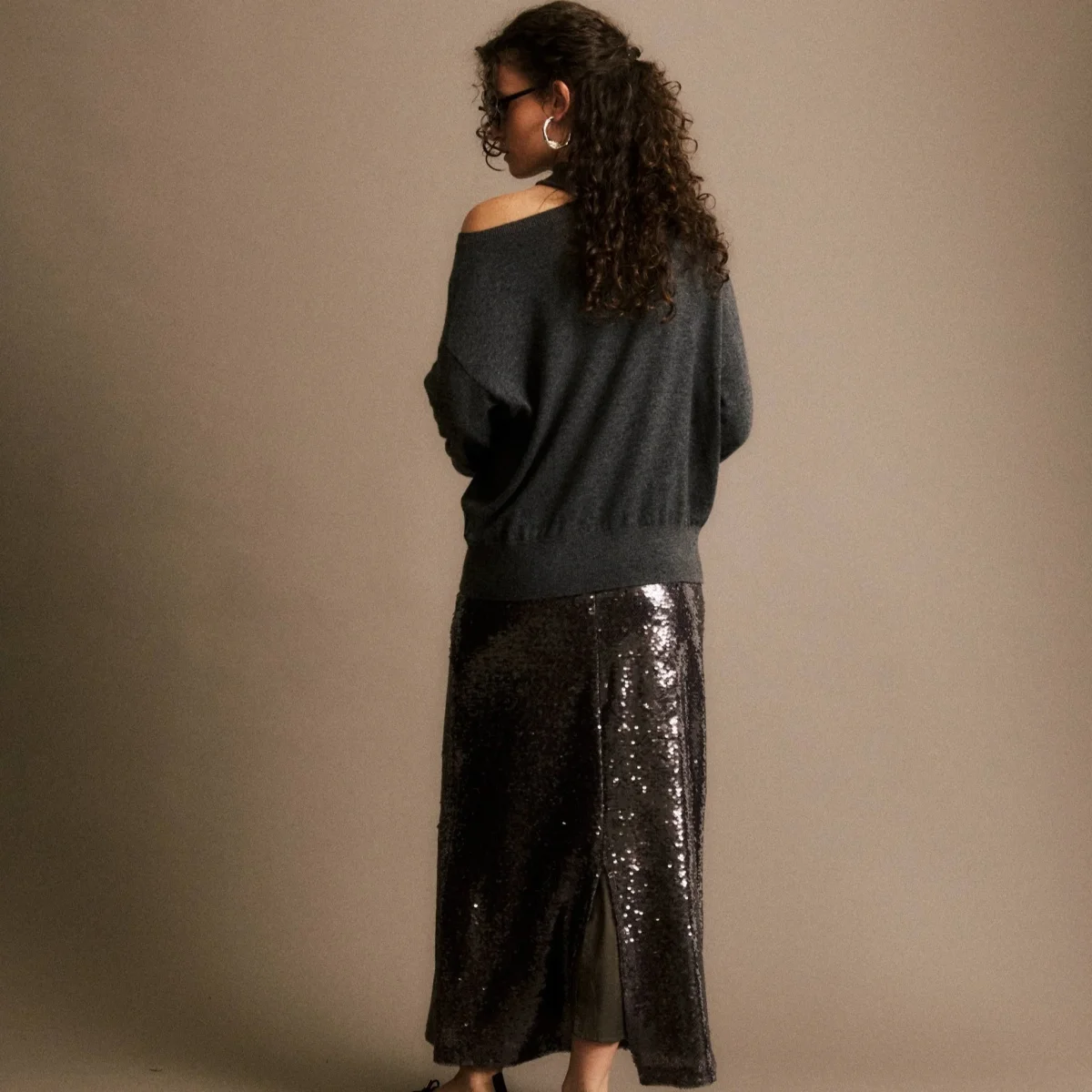 Un pull gris qui marie confort et design, parfait pour rehausser une tenue minimaliste.