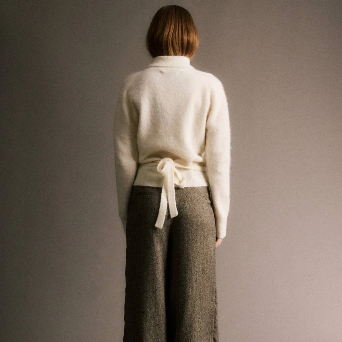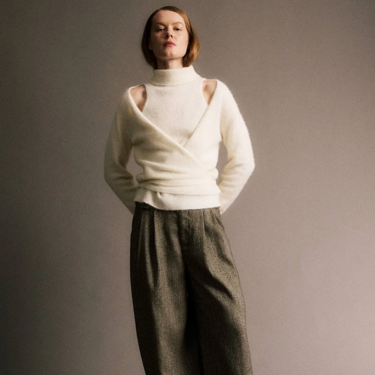 Pull col cheminée en laine et alpaga crèmeCe pull conjugue chaleur et modernité grâce à son mélange de laine et d’alpaga, doux et raffiné. Col cheminée revisité avec un col V croisé pour une allure originale et féminine Découpes style débardeur qui apportent une touche graphique et contemporaine Teinte crème intemporelle, facile à associer et […]