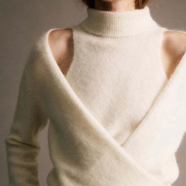 Col cheminée revisité avec un col V croisé pour une allure originale et féminine