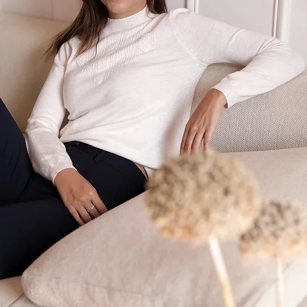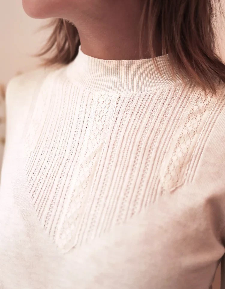 Pull léger avec une maille douce et agréable à porter avec de jolies détails au devant, ainsi qu’un col montant.