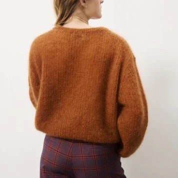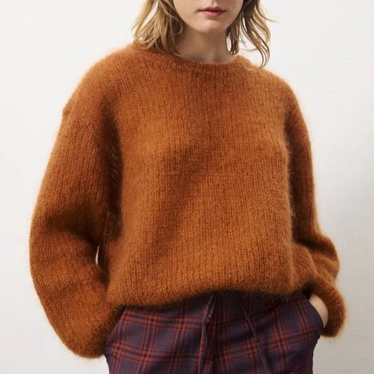 Pull col rond en mohair, coupe ample, fit loose Composition : 76% Mohair – 18% Polyamide – 6% Laine Entretien : Lavage à la main à l’eau froide Conseil taille : Si vous hésitez entre deux tailles, choisissez plutôt la plus petite Fabriqué en Italie