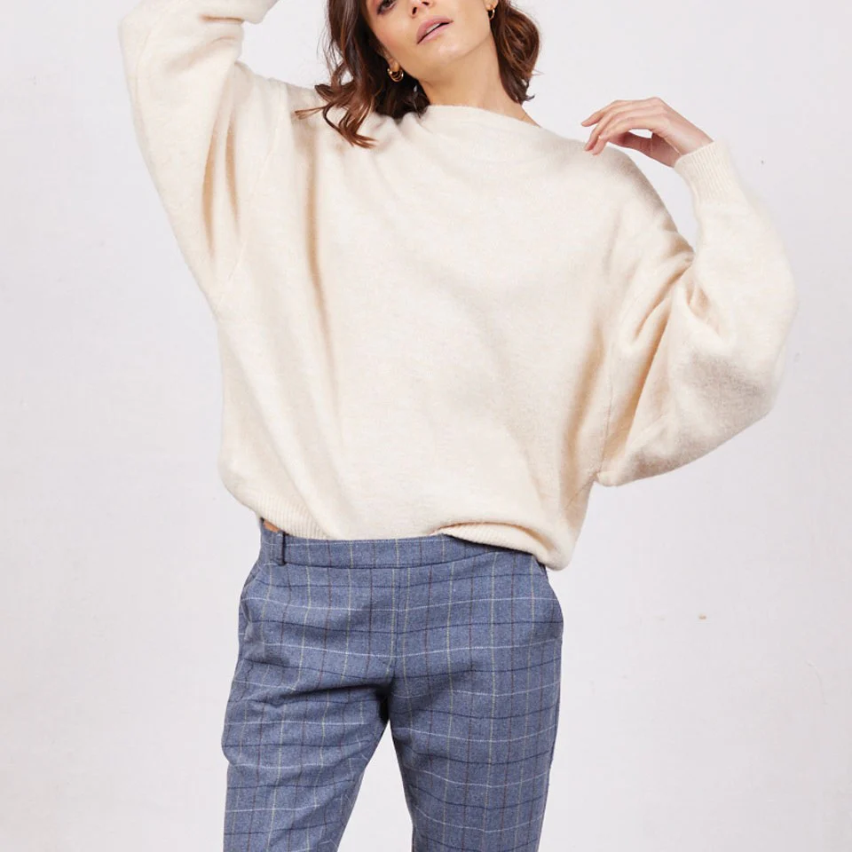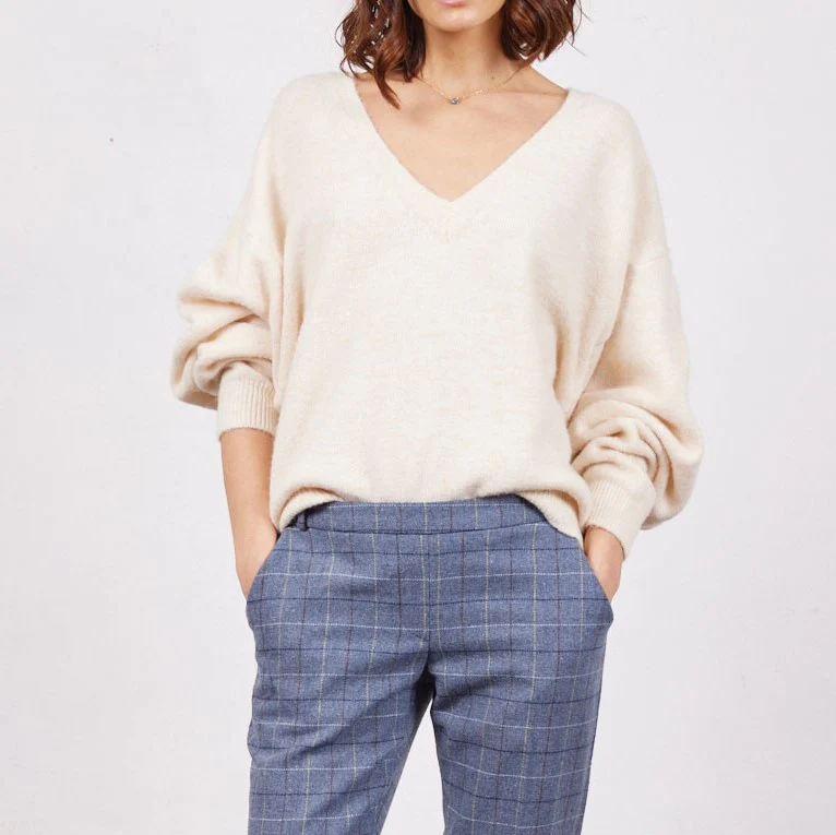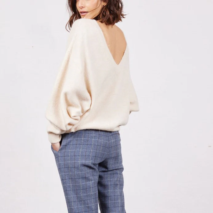 Pull oversize encolure en V, peut se porter col V devant ou au dos! Manches type chauve-souris.