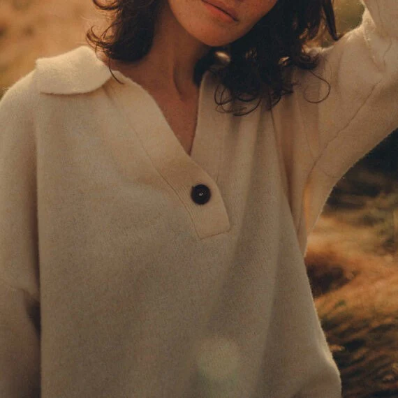 Pull manches longues avec emmanchures basses, se portant au dessus d’une chemise ou à même la peau Col et patte milieu devant type “polo” avec 1 bouton Matière : Tricotage dense, doux et léger. Une main très chaude. Composition : 19% Laine 29% Polyamide 50% Acrylique 2% élasthanne Entretien : Lavage machine à froid programme […]