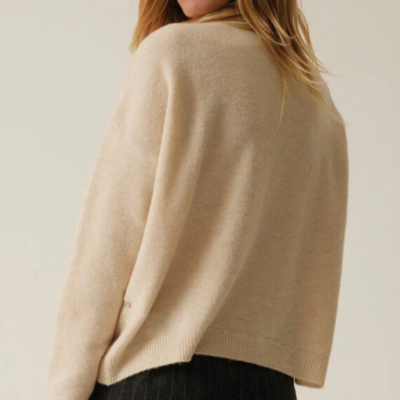 Pull manches longues avec emmanchures basses, se portant au dessus d’une chemise ou à même la peau