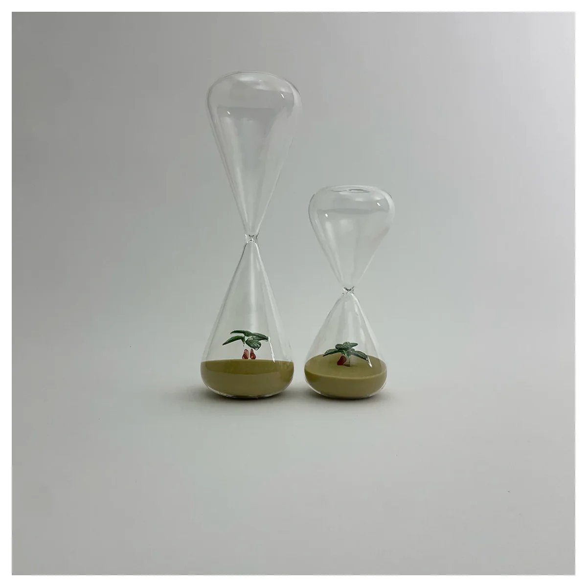 Apportez une touche d’exotisme et d’élégance à votre décoration avec le sablier Sahara, un objet unique. Alliant design raffiné et détails surprenants, ce sablier transparent contient un sable doré éclatant qui évoque les dunes dorées du désert, accompagné d’un délicat palmier en verre, symbole d’évasion et de sérénité.