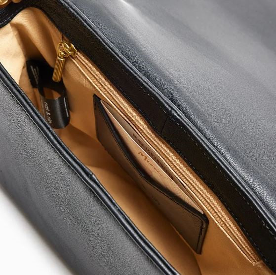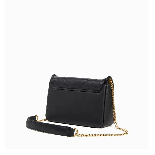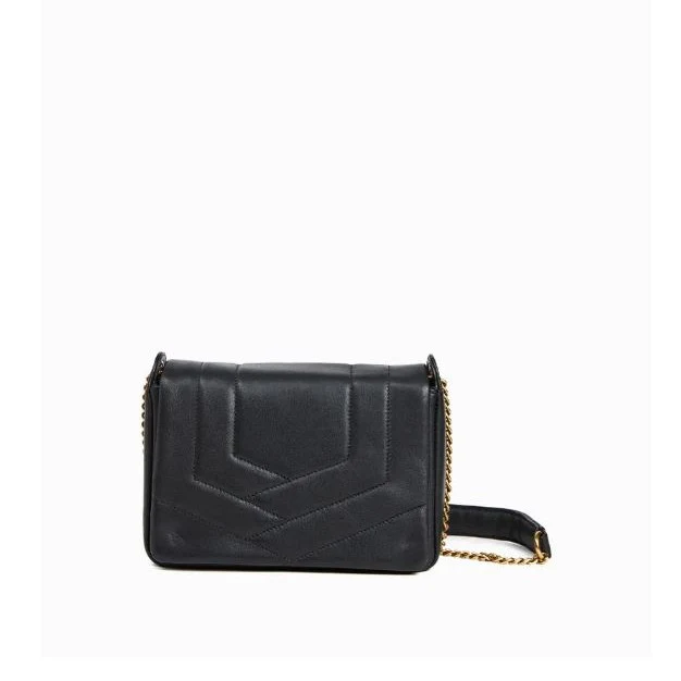Sac bandoulière en cuir lisse noir, un allié élégant à porter de jour comme de nuit ! Craquez pour ses lignes graphiques matelassées ainsi que son double porté. La fermeture pression est aimantée sous le rabat.
