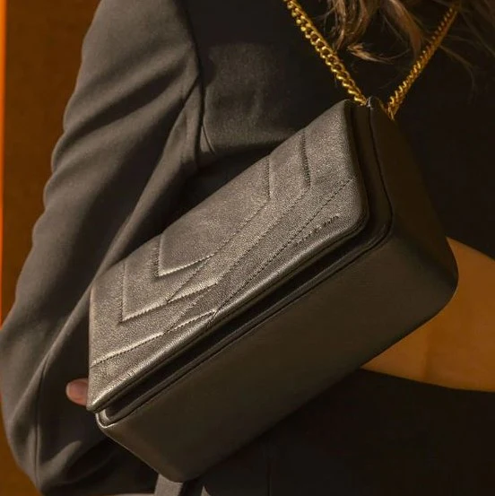 Sac bandoulière en cuir lisse noir, un allié élégant à porter de jour comme de nuit ! Craquez pour ses lignes graphiques matelassées ainsi que son double porté. La fermeture pression est aimantée sous le rabat. Dimensions : H 14 x L 22 x P 7 cmBandoulière chaînes et cuir (longueur max.110 cm)Intérieur : une […]