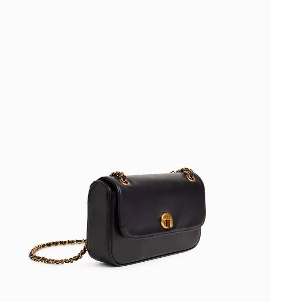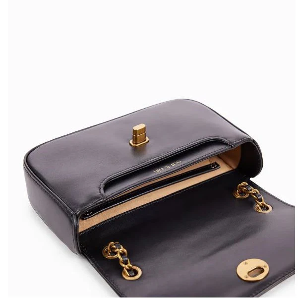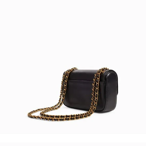 Sac bandoulière Mini Grace, parfaite combinaison de style et modernité, il confère un look unique et sophistiqué avec ses lignes épurées et ses chaînes métallisées. Bandoulière chaînes et cuir (longueur max. 128 cm). Fermoir tourniquet. Extérieur : une poche plaquée sous le rabat et une poche plaquée à l’arrière. Intérieur : un porte-cartes et une poche plaquée