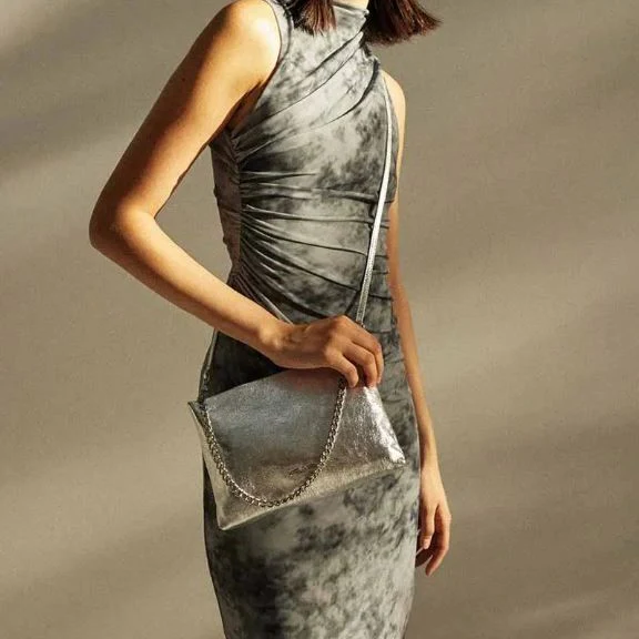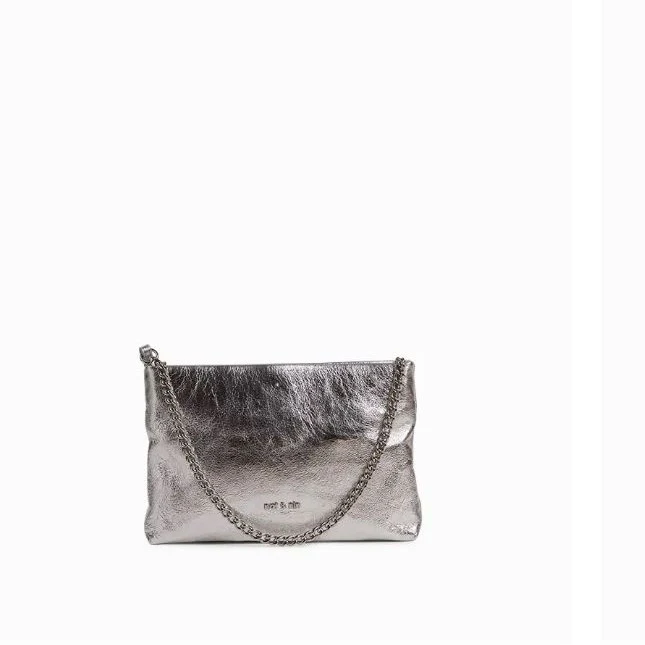 Sac pochette Molly, stylé et pratique. Son cuir métallique unique et iconique rendra votre look parfait pour les fêtes de fin d’années. Le choix idéal pour un look intemporel ! Sa bandoulière est amovible et réglable (longueur max. 114 cm). Fermeture zippée. On y trouve à l’intérieur une une poche zippée.