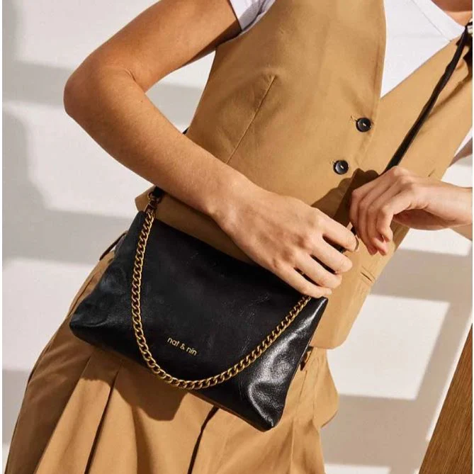 Sac pochette Molly, stylé et pratique. Son cuir métallique unique et iconique rendra votre look parfait pour les fêtes de fin d’années. Le choix idéal pour un look intemporel ! Sa bandoulière est amovible et réglable (longueur max. 114 cm). Fermeture zippée. On y trouve à l’intérieur une une poche zippée. Composition : cuir de […]