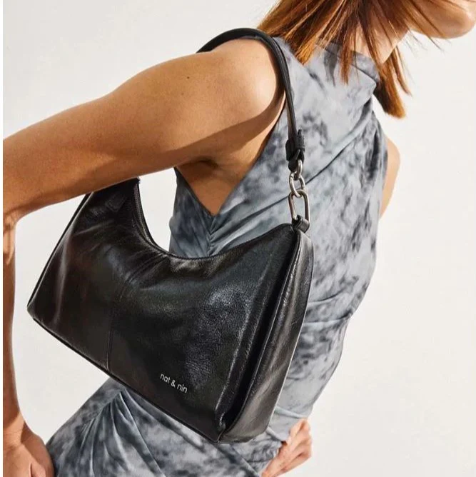Sac bandoulière Rejina, la nouvelle baguette à glisser sur l’épaule pour un look branché et métallisé. Fermeture zippée. On y trouve à l’intérieur un porte-cartes, une poche plaquée et une poche zippée