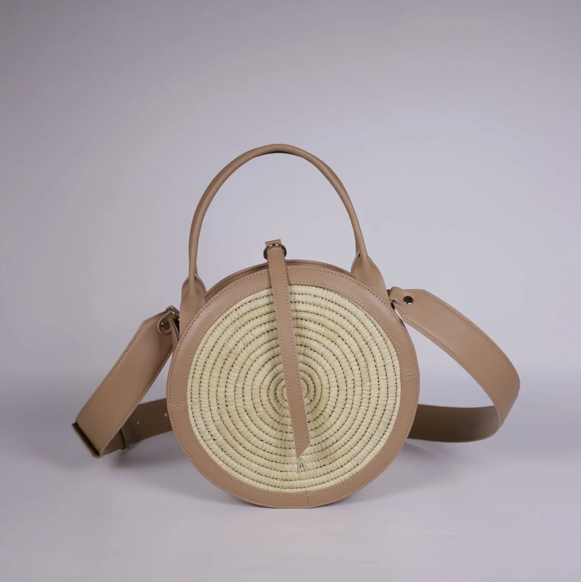 Le sac panier en cuir et raphia est le sac de l’été de la marque CRAIE! Il est fabriqué artisanalement à la main au Maroc avec un cuir d’agneau. Son format est 22 cm de diamètre x 6 cm.