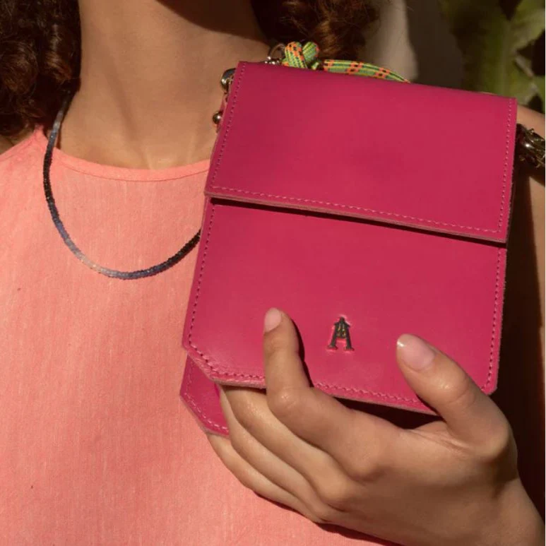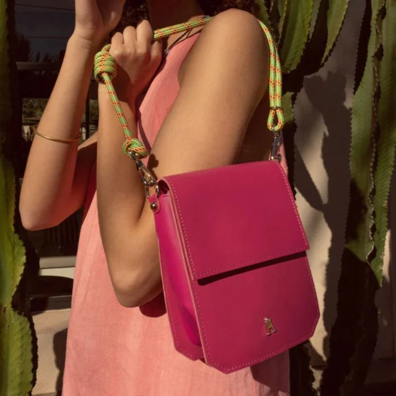 Petit sac en cuir rigide box est le compagnon parfait du quotidien pour un look frais et à la mode ! Ce sac au look structuré offre une grande praticité et modularité, ce qui en fait un must pour toutes vos sorties. Portez-le selon vos looks & envies grâce à ses deux bandoulières : une sophistiquée en chaîne escargot doré clair (qui peut se doubler et donc se raccourcir), l’autre plus sporty, en corde d’escalade vert fluo.