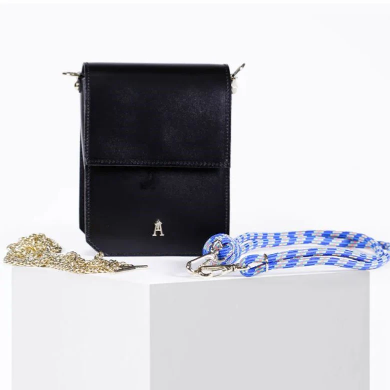 Petit sac en cuir rigide box est le compagnon parfait du quotidien pour un look frais et à la mode ! Ce sac au look structuré offre une grande praticité et modularité, ce qui en fait un must pour toutes vos sorties. Portez-le selon vos looks & envies grâce à ses deux bandoulières : une sophistiquée en chaîne escargot doré clair (qui peut se doubler et donc se raccourcir), l’autre plus sporty, en corde d’escalade bleu vif.