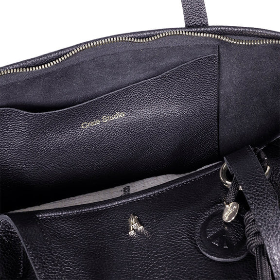 Confectionné en cuir de veau grainé, il séduit par sa silhouette structurée et son allure affirmée. Sa grande capacité permet d’y glisser toutes vos affaires pour une escapade ou une journée bien remplie.