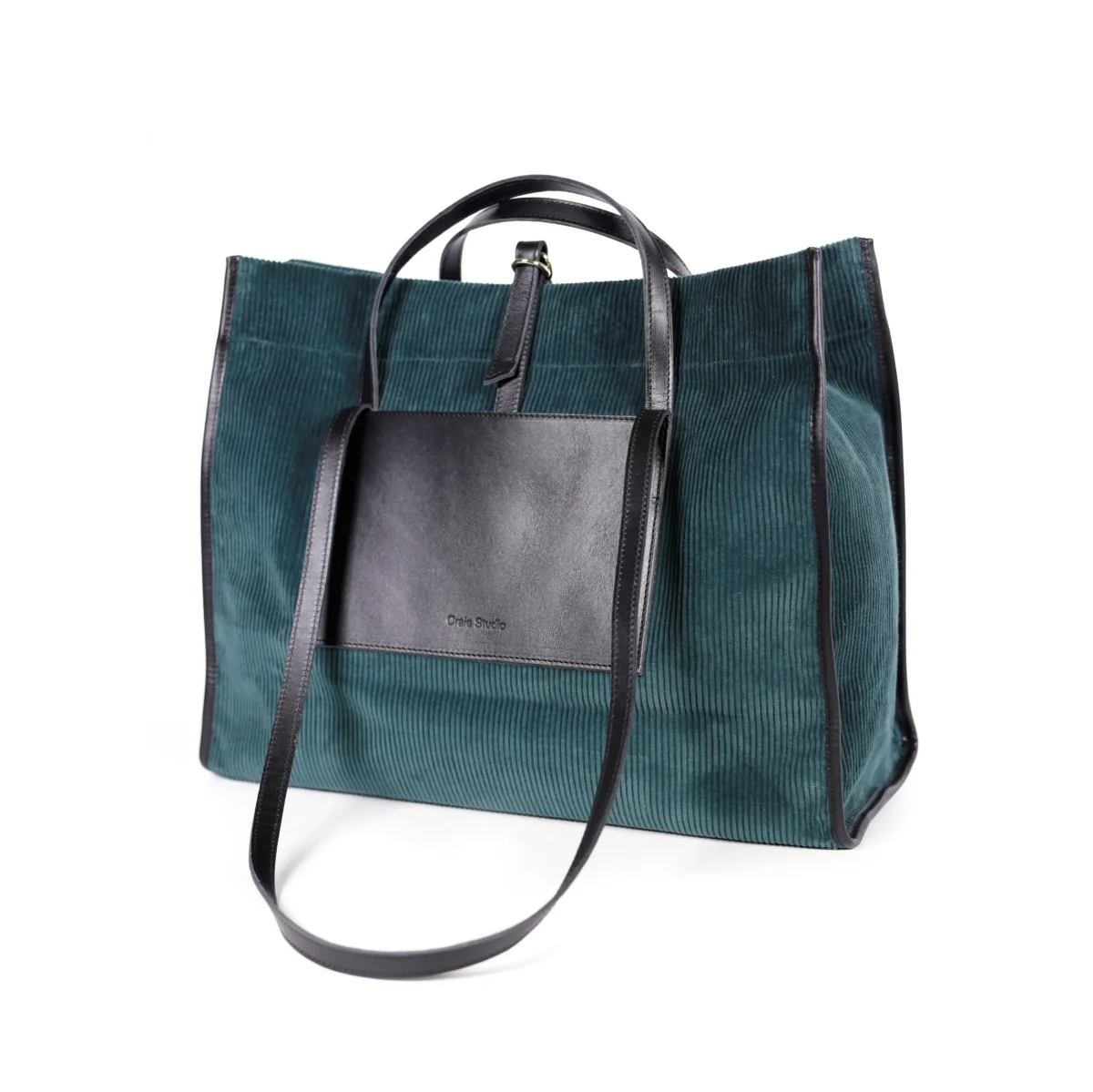 Le modèle Dessin est la nouveauté de la marque pour cette saison, le grand cabas horizantal, ici en version velours côtelé 100% coton biologique.