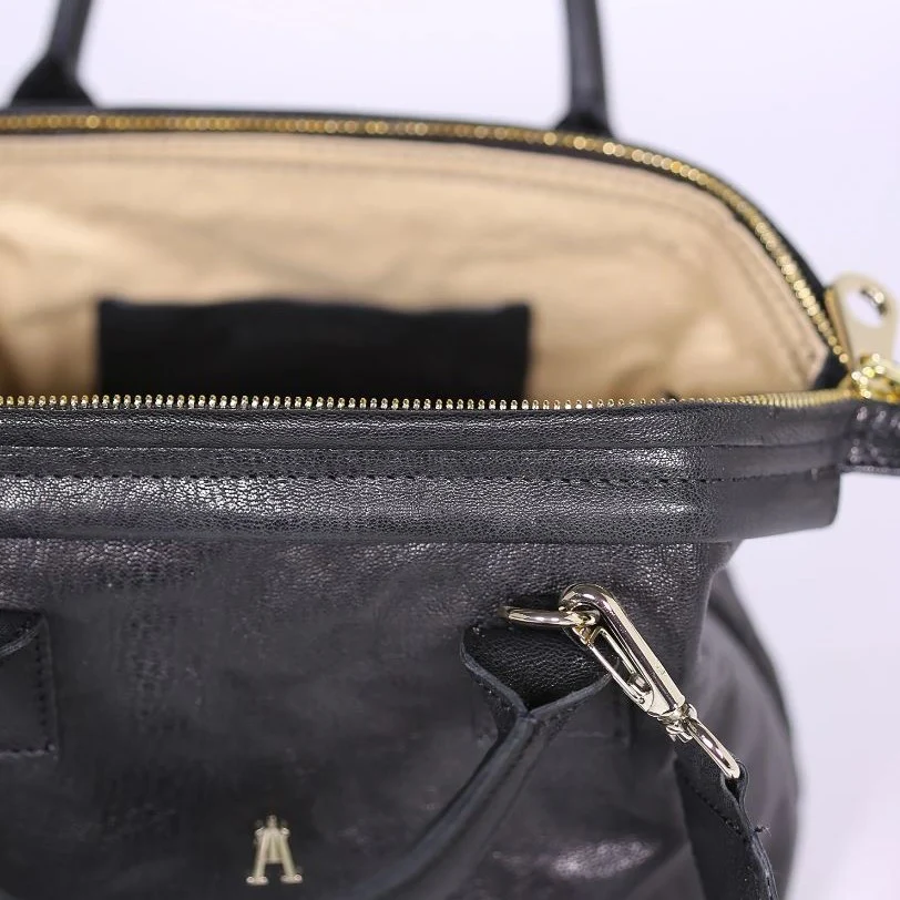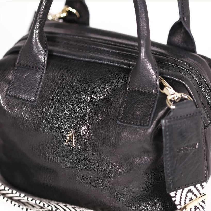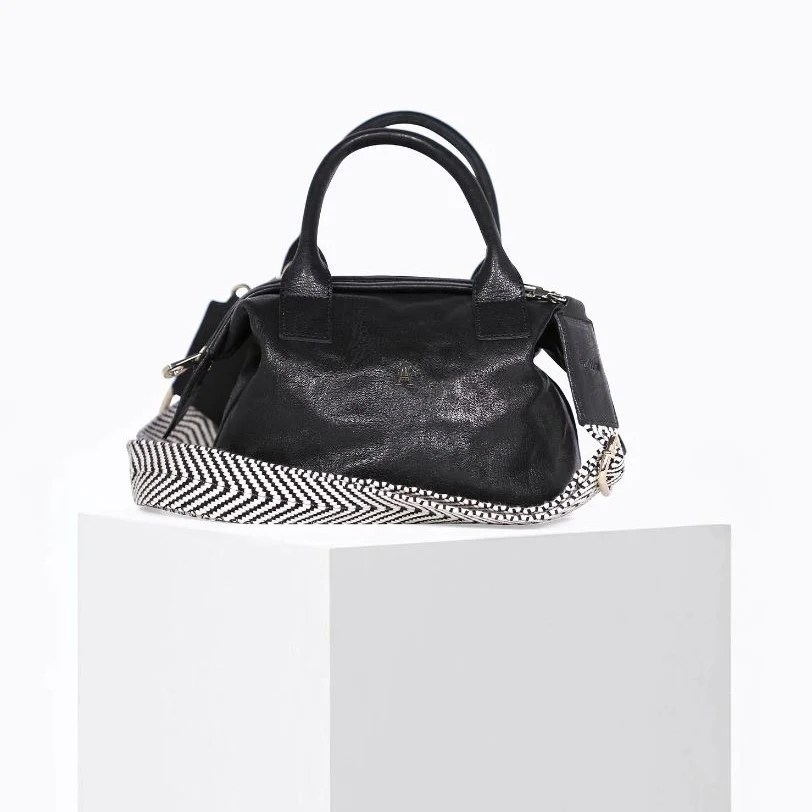 Sac petit volume, modulable, se porte à la main, à l’épaule ou en crossbody. Nous adorons son ouverture spacieuse, inspirée d’une mallette de médecin.