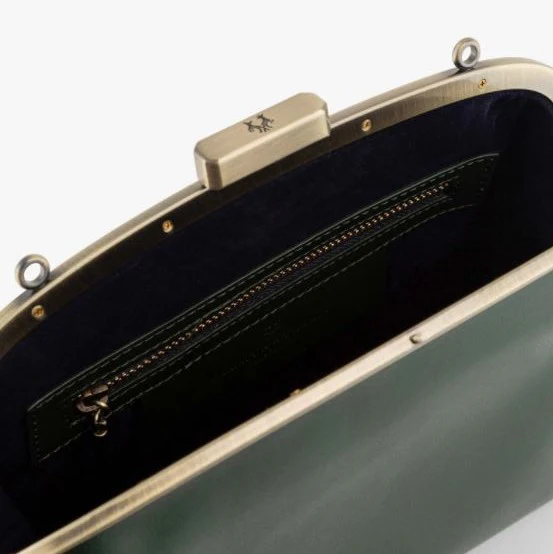 Cuir de vachette vert et doublure en velours bleu