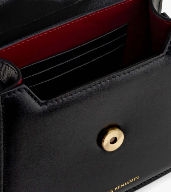 Cuir de vachette noir et doublure en microfibre bordeaux