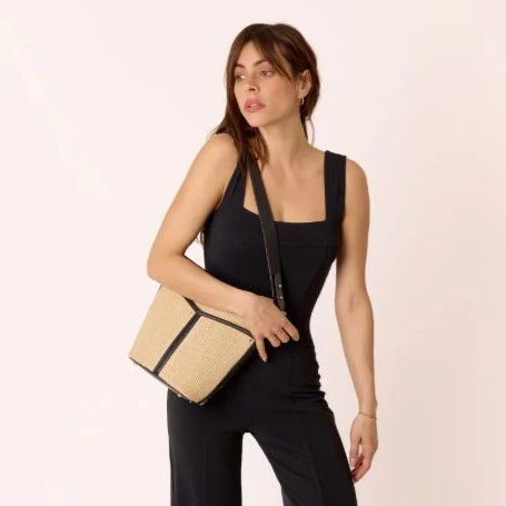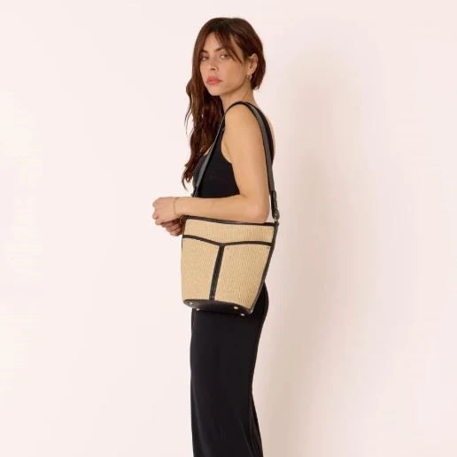 Le sac seau bi-matière Gabrielle, c’est le mix parfait entre le jute tressé et des détails en cuir lisse. À la fois pratique et chic, il séduit par ses petites touches raffinées : une poche plaquée sur le devant, une doublure en toile de coton sable et des finitions dorées en laiton brossé. Sa lanière […]