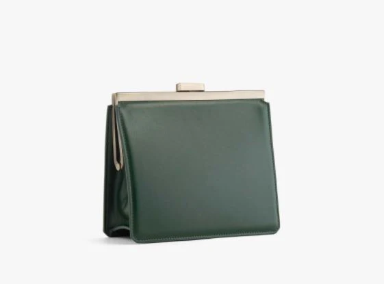Sac pochette carré cuir lisse émeraude.