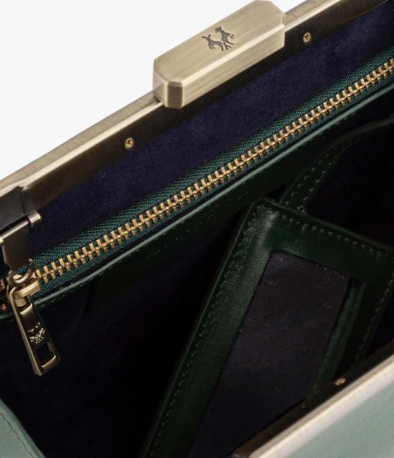Cuir de vachette vert et doublure en velours bleu