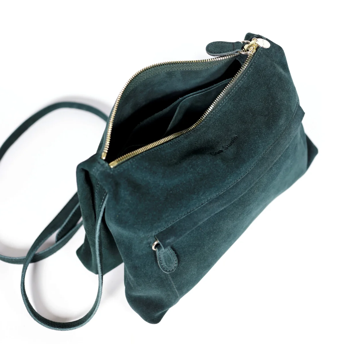 Sac bandoulière en cuir de vachette, il se compose de 2 compartiments distincts divisés par une poche centrale zippée. Bandoulière réglable. Dimensions : 25 x 20 x 2 cm