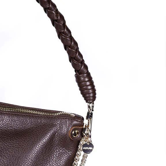 Réalisé en cuir de vachette grainé . Sa silhouette souple et généreuse est sublimée par une poignée en cuir tressé ton sur ton, remplaçant la traditionnelle corde pour une allure encore plus élégante.