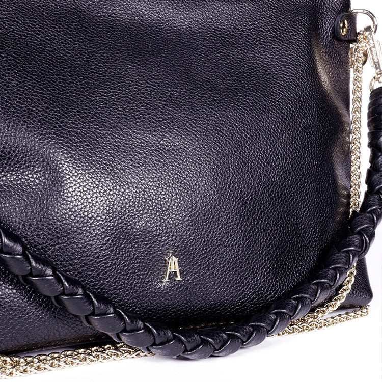 Ce modèle est livré avec une bandoulière en chaîne dorée amovible, permettant un porté épaule ou crossbody selon vos envies.
